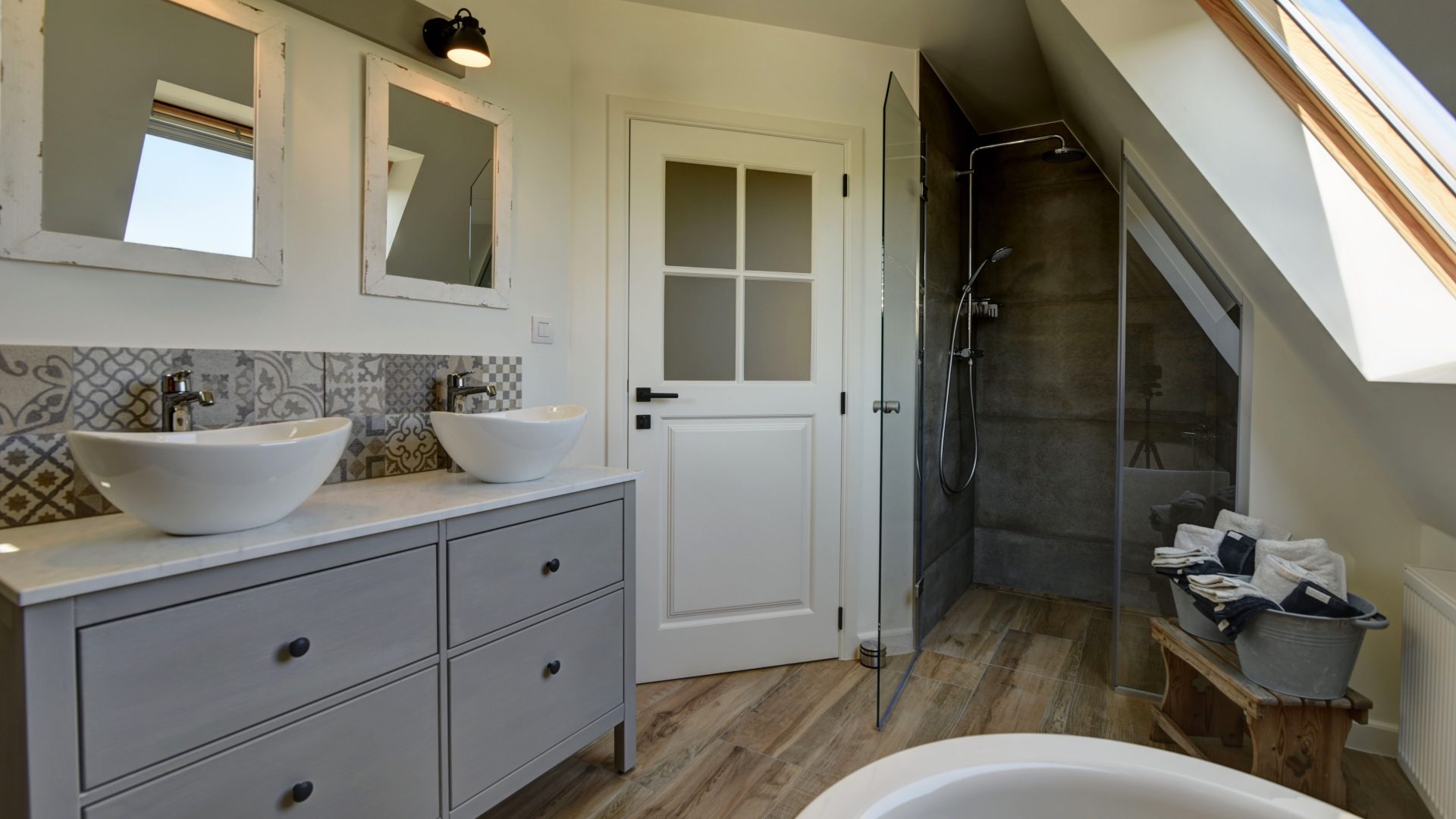 Een ruime badkamer waarin zachte handdoeken en badjassen van The House of Walra voor u klaar liggen.